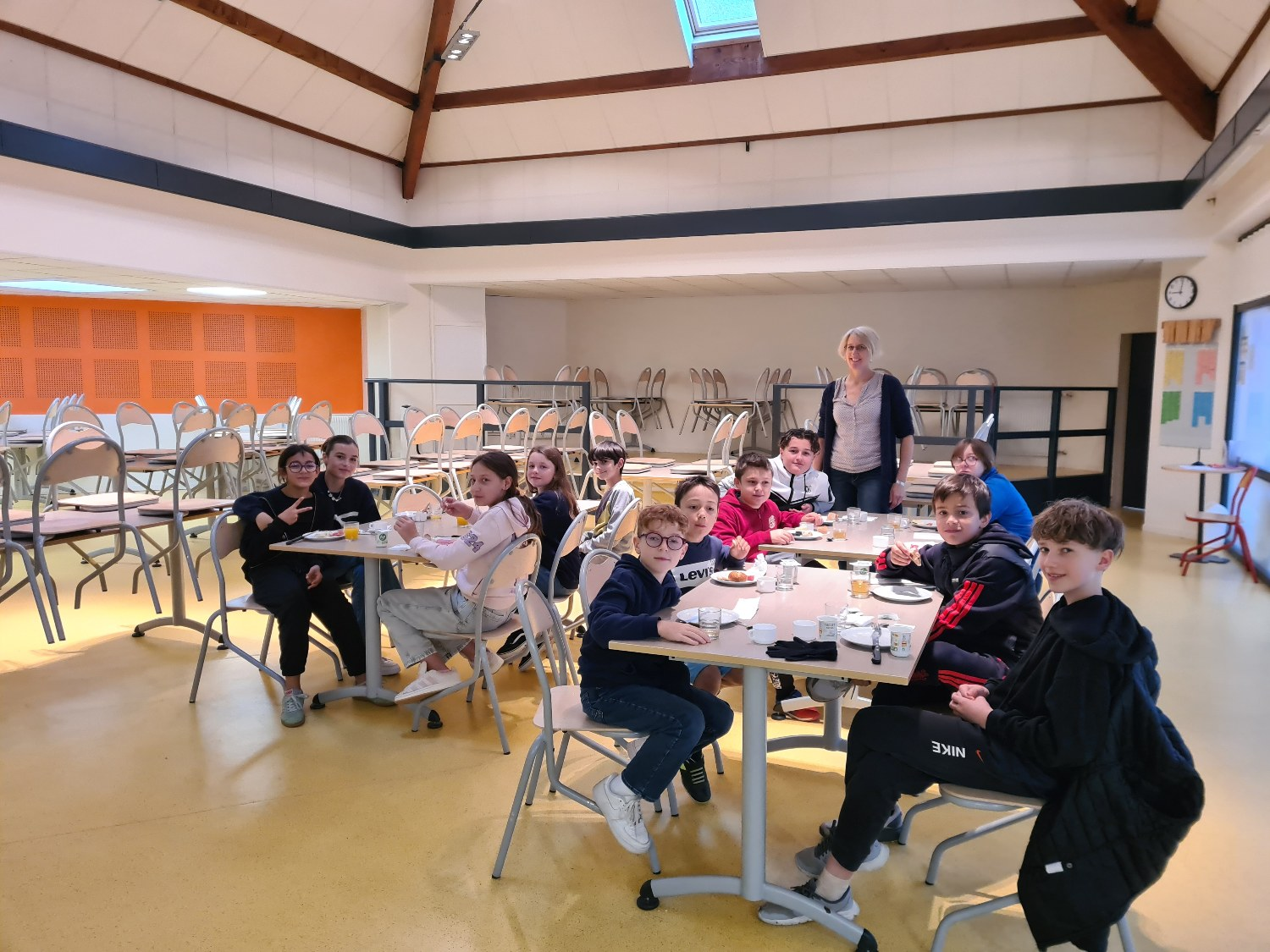 Les germanistes de 5ème ont découvert les spécificités culinaires allemandes en partageant un petit déjeuné allemand au self : Ceci n’est pas seulement composé de tartines beurrées et de confiture, mais aussi de charcuterie et de fromage.